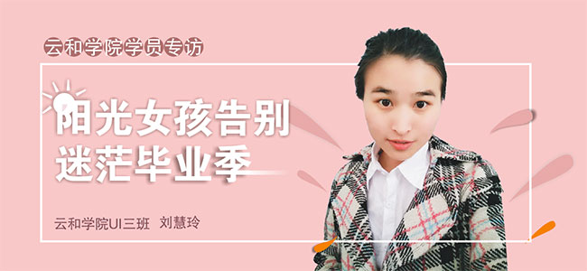 导语:刘慧玲,一个阳光灿烂的女孩,学习计算机应用专业,今年6月份即将毕业于开封大学,一个偶然的机会与云和学院结缘,并让她决定一直向UI设计师方向努力!
