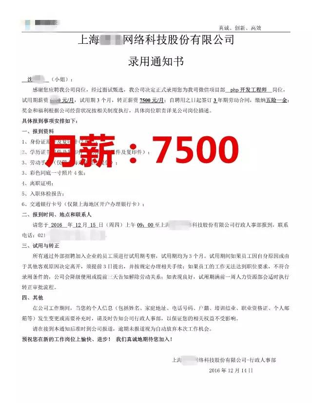 机会留给有准备的人,沈**云和毕业后顺利入职上海一家网络科技公司,担任PHP开发工程师的职位。入职以来,她参与公司的网站开发项目中,工作中她发现和同事之间的沟通很重要,能够很大程度地提高工作效率。她表示在云和学到的知识和技能,使她在工作中游刃有余。