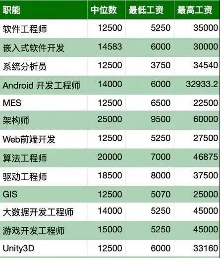 程序员不同职能岗位的工资收入