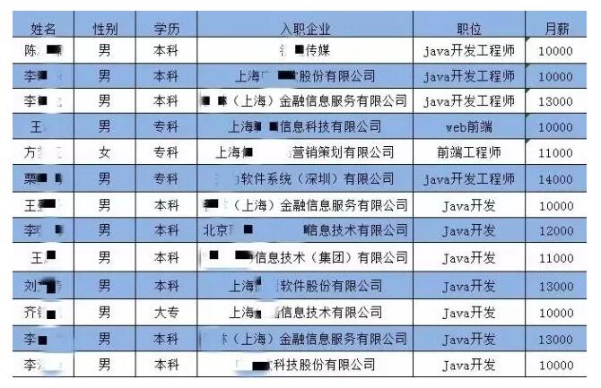 下面这张图是我们云和数据毕业学员就业情况的一张截图,这些学员不少都是专科学历,但是他们经过学习不仅实现了很好地就业,而且拿到了令人羡慕的薪资。