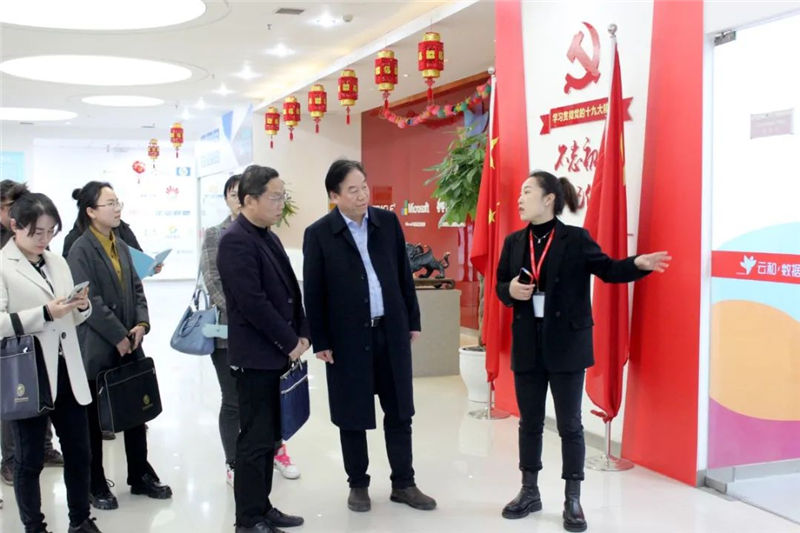 云和数据集团副总经理李雨恒,云和技术事业部副总经理李春光,云和数据集团人资行政中心总监韩莹,云和教育事业部学员服务管理部总监王趁红,云和技术事业部政企合作部经理张学伟对陈院长一行的到来表示热烈欢迎,并陪同参观。