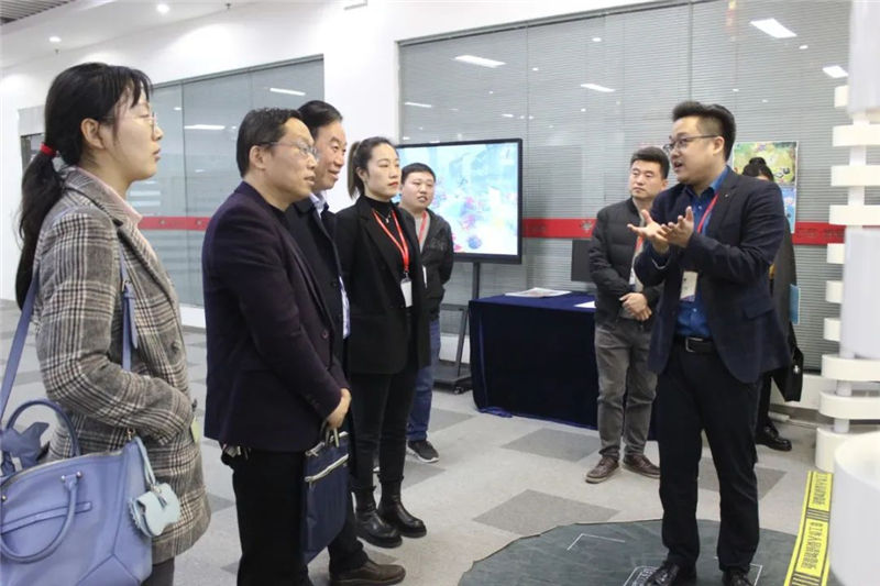 云和数据人资行政总监韩莹向陈院长一行介绍了云和数据的创立初衷、公司的发展历程、运营模式、四大事业部、战略规划和所获荣誉资质等情况,并同各位领导一起参观了办公区、技术体验中心和教学区等区域。